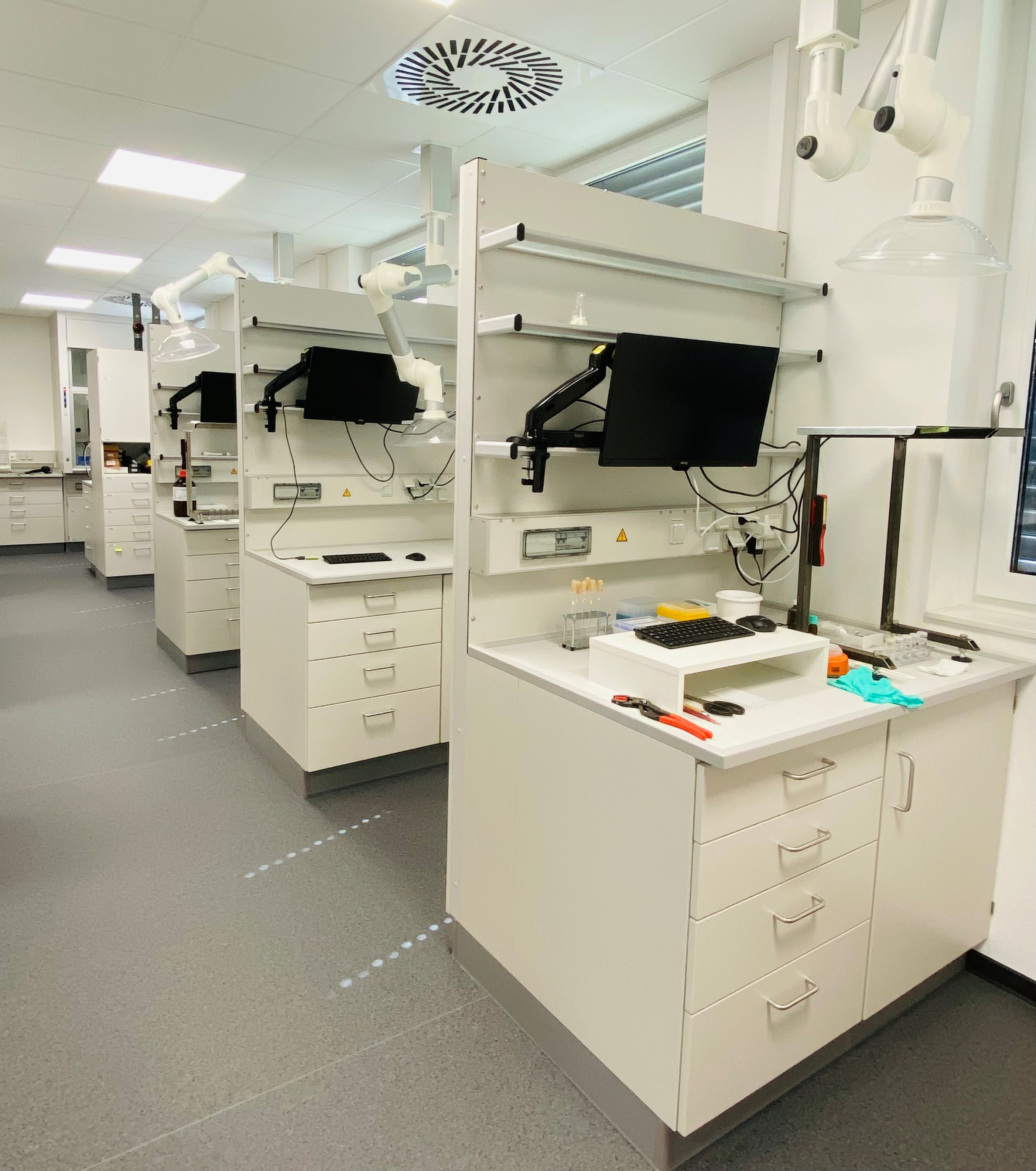 Um dem umsatzmäßigen und personellen Wachstum über die Jahre gerecht werden zu können, wurden die Räumlichkeiten sukzessive erweitert. Um bei einer weiteren Expansion eine Dezentralisierung zu vermeiden, wurde im Jahr 2020 mit der Konzeption eines neuen Labor- und Bürogebäudes in Bodenheim begonnen. Die Ausstattung mit modernster Labortechnik wird die Einhaltung unserer hohen Qualitätsstandards weiter vorantreiben. Im Sommer 2022 erfolgte die Fertigstellung des Gebäudes und damit der Umzug zum neuen Firmensitz.